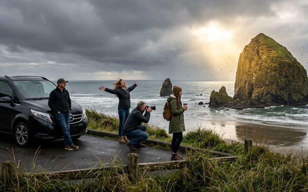 Rose Shuttle provides private sightseeing rides from Seaside to Ecola State Park and Tillamook Head, Cannon Beach and Haystack Rock, Fort Clatsop National Memorial, and Astoria — all within 30 miles north or south on Hwy 101. We also run custom Portland day trips for Seaside guests wanting city access without the drive.