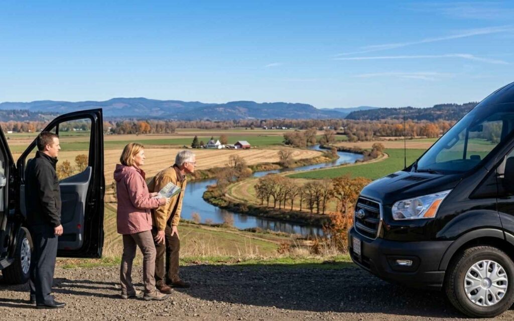 Rose Shuttle provides private sightseeing rides from Sherwood to Champoeg State Heritage Area, the Tualatin River National Wildlife Refuge, the Oregon Coast via Hwy 18 and 101, Silver Falls State Park, and Portland city trips for visitors staying in Sherwood who want easy access without the drive.