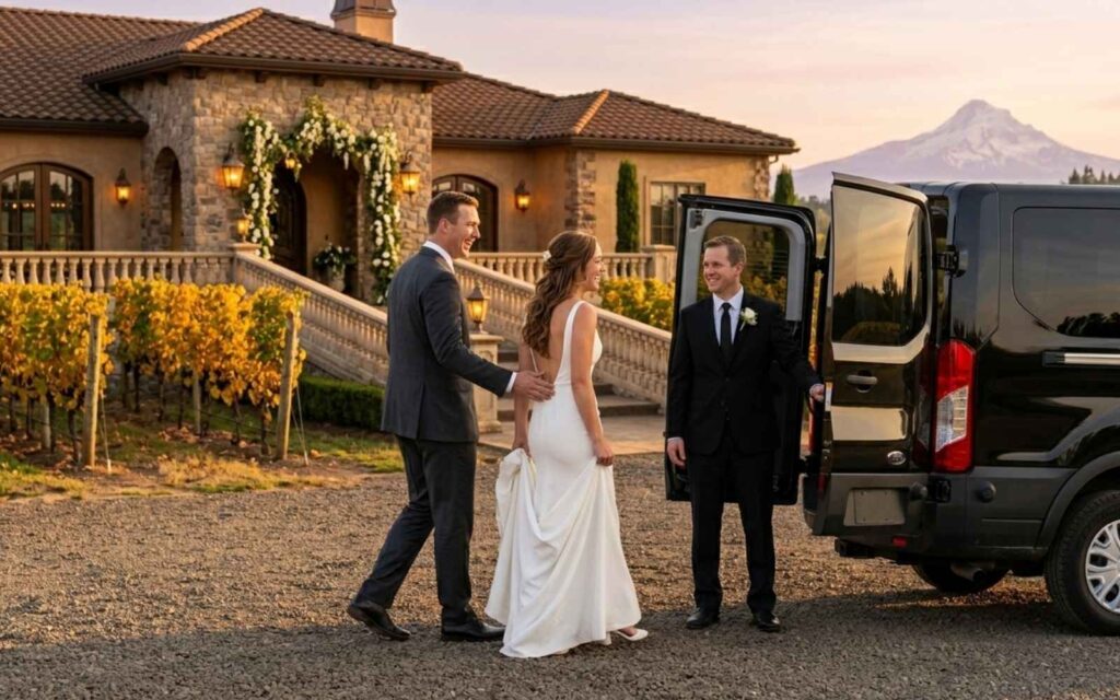 Rose Shuttle provides private wedding transportation for bridal parties, guests, and hotel-to-venue transfers throughout Sherwood and Washington County. We serve vineyard wedding venues in the nearby Chehalem Mountains and Ribbon Ridge AVAs, Tualatin Valley estate venues, and Sherwood event spaces.