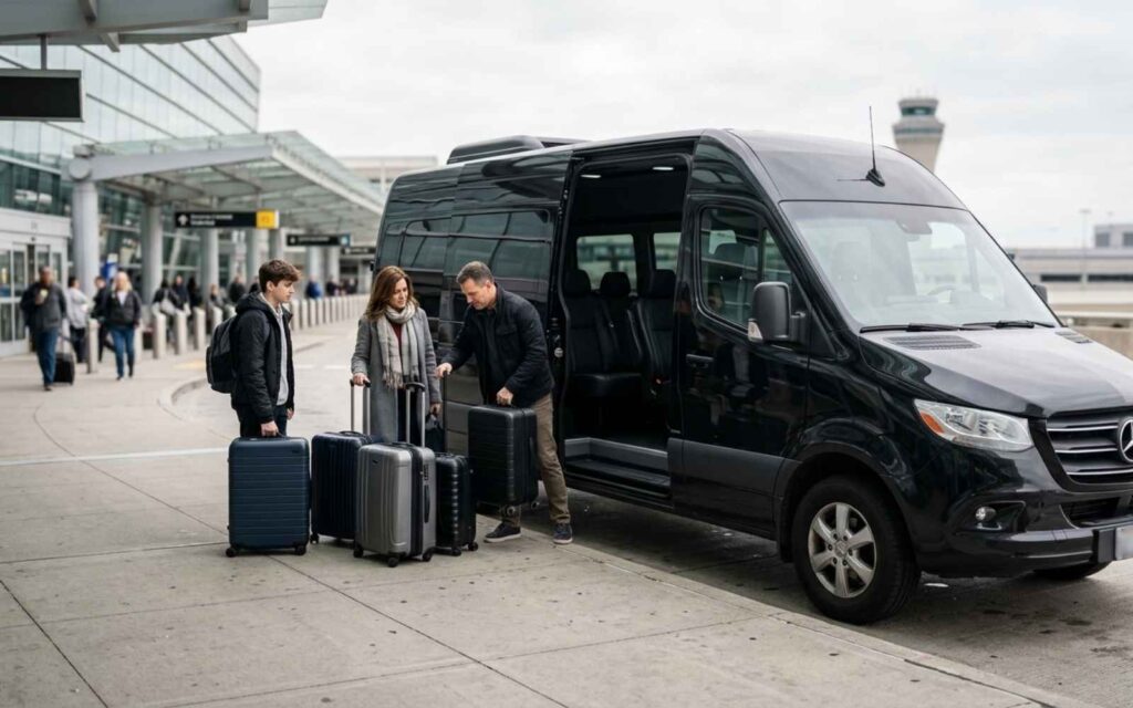 You’ll be dropped at your airline’s departures curb for quick check-in and security. A flight time share helps build a pickup window with real buffer.